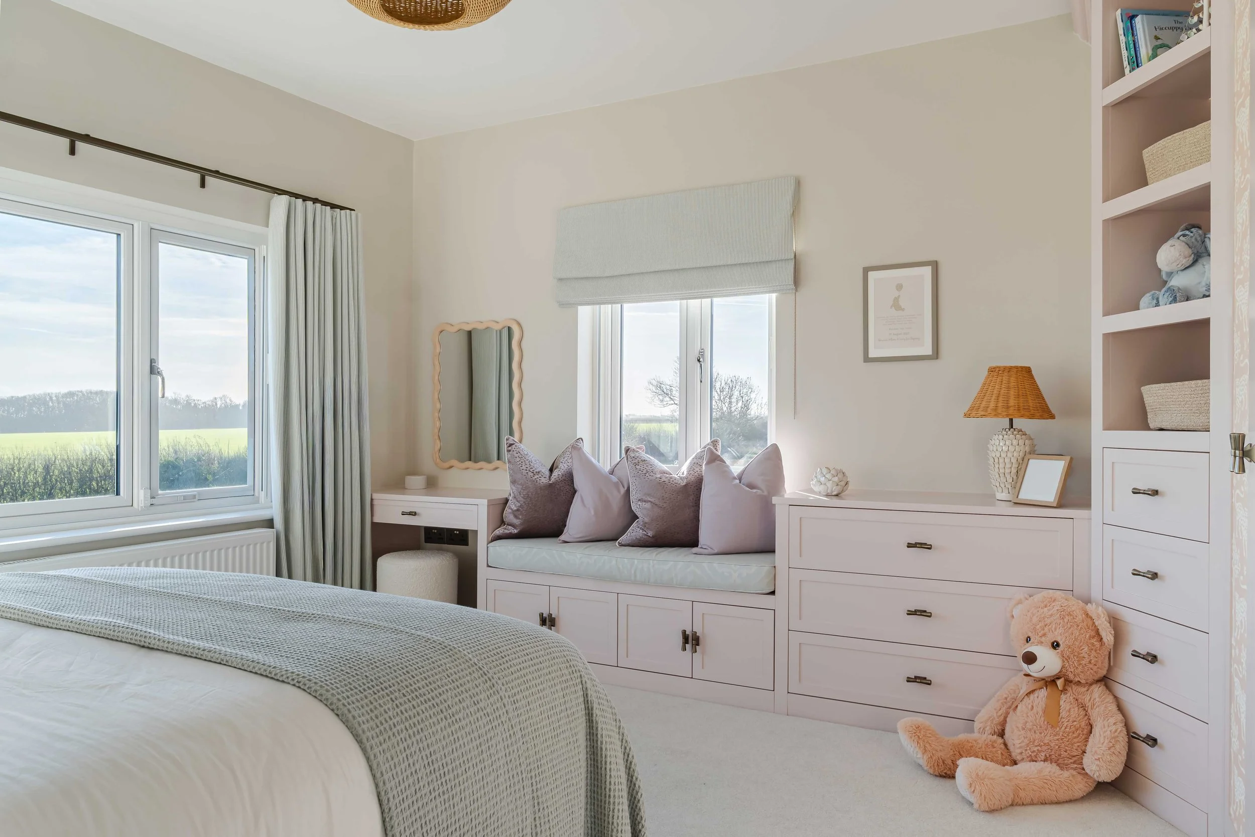 Woodglen is a beautiful family home set in the Cambridgeshire countryside. This renovation will be a gradual project with a lot of love, care, and thoughtfulness into each space that we work on over time. The priorities for the client began with the little girls bedroom and a gentleman’s study. Whilst the client prefers a neutral palette she wanted to embrace some colour in a meaningful way.